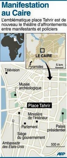 Sur la place, des groupes de manifestants scandaient des slogans hostiles au pouvoir militaire, réclamant la chute du maréchal Hussein Tantaoui, à la tête du Conseil suprême des forces armées (CSFA) qui dirige le pays depuis le départ du président Moubarak, chassé par une révolte populaire en février.