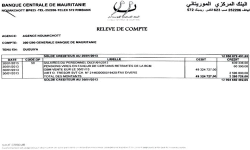 Quant aux déposants qui possèdent des avoirs supérieurs à 10 millions d’ouguiyas2, leur identité sera communiquée à la BCM dès que celle-ci nous aura fourni les justifications des manipulations qu’elle a opérées sans notre autorisation sur les comptes de la GBM dans ses livres.