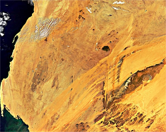 Le Sahara Occidental est visible en haut et à gauche de l’image.