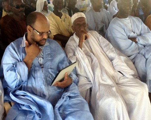 En allusion à cette présence, le nouveau chef de l’UPR a critiqué les soutiens à ce projet d’autonomie : « Nous dénonçons l’organisation de ce congrès et ceux qui l’ont applaudi ou y ont assisté ». Le leader de Tawassoul, Mohamed Jamil Mansour (photo ci-dessus en boubou bleu© Le Courrier du Sahara), cité par le Quotidien de Nouakchott, a quant à lui qualifié le discours prononcé par le président des FLAM, Samba Thiam, lors de l’ouverture du congrès de « discours important ». Selon lui, ce document « mérite d’être discuté mais ce qui est triste, c’est que certains se lancent dans des critiques sans avoir pris connaissance du contenu de ce discours », a-t-il poursuivi.